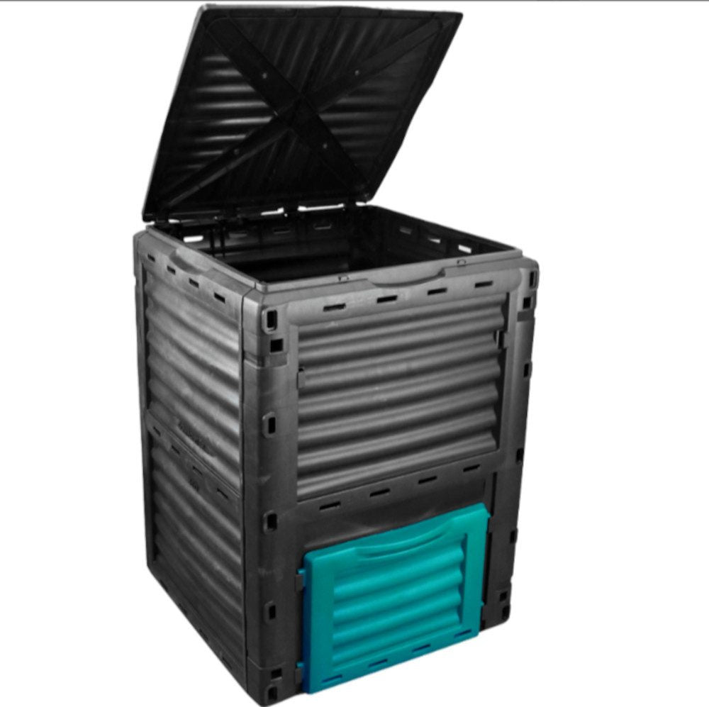- Der Komposter ist sehr geräumig und fasst bis zu 300 Liter für Gartenabfälle jeder Art. Maße LxBxH: 61x61x83 cm
